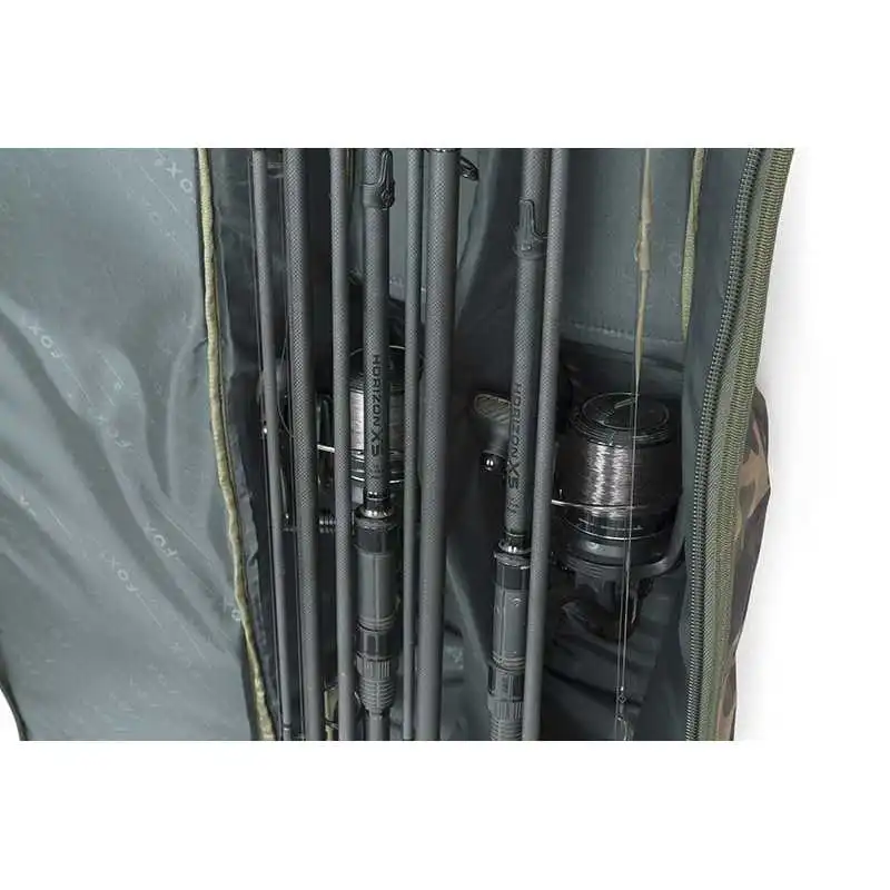 Durch sein einzigartiges Design wird der schon üppige Platz noch weiter optimiert. In dieses Rod Case bekommst du locker deine Ruten sicher verstaut sogar mit großen weitwurfrollen wie z.B. der FX13. Es ist so konzipiert, dass du deine Ruten entweder mit den Ringen oder der Rolle nach unten einsetzen kannst. Die Rutenenden sowie auch die Rutenspitzen werden durch die gepolsterten Aufnahmetaschen an beiden Enden gut geschützt und die Spitzenringe können mit Klettverschlüssen fixiert werden. Alle wichtigen Bereiche deiner Rollen und Ruten sind extra mit verstärkten PU-Einsätzen ausgestattet.