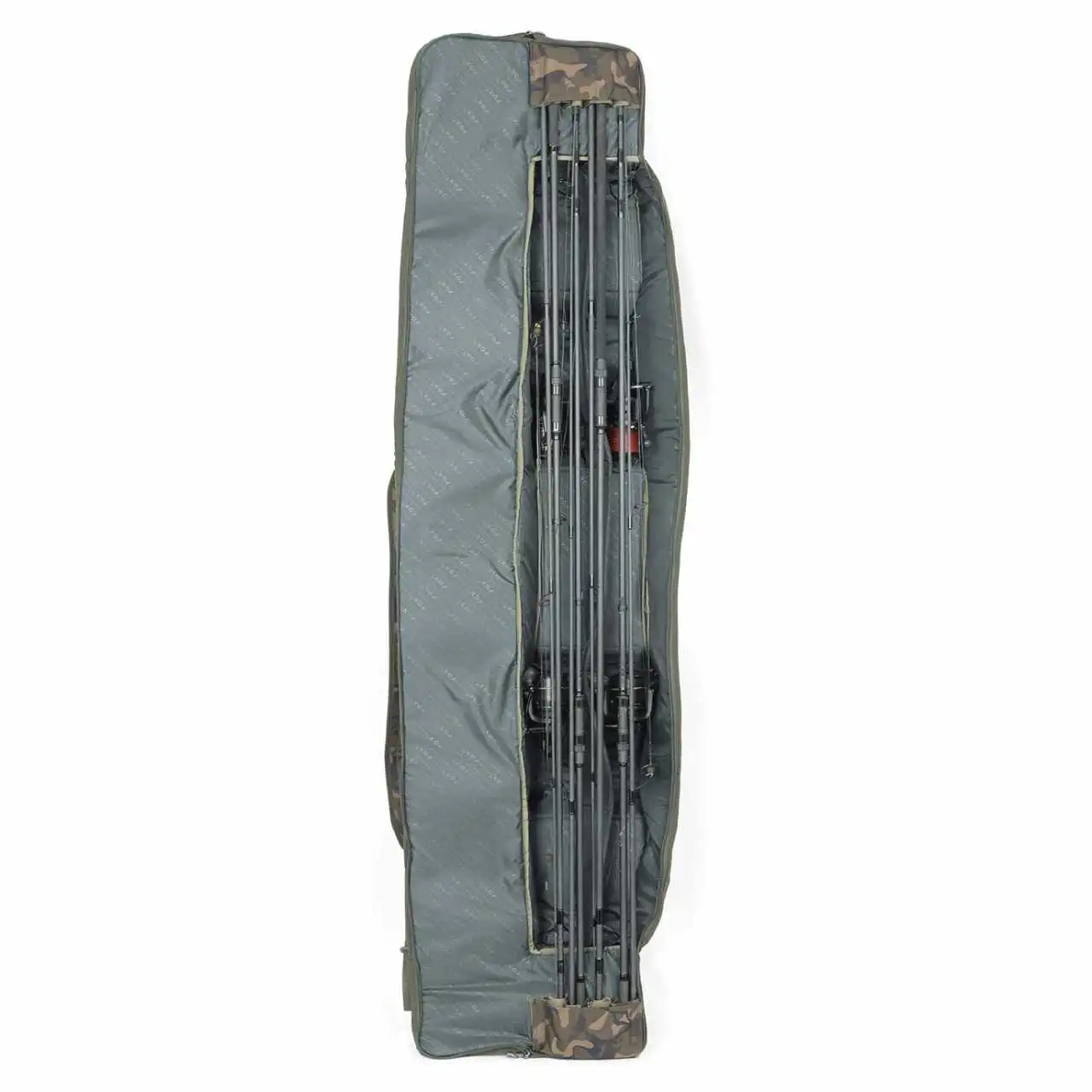 In das Camolite 12 ft 2+2 Rod Case kann bis zu 4 fertig montierte Ruten aufnehmen und enthält gepolsterte Trennelemente. Transportieren kannst du das Rod Case ganz nach Belieben entweder über die versteiften EVA-Tragehandgriffe oder über den abnehmbaren gepolsterten Schultergurt. Weiters bietet die dieser Rod Case eine große Außenaufsatztasche für deinen Kescher.
