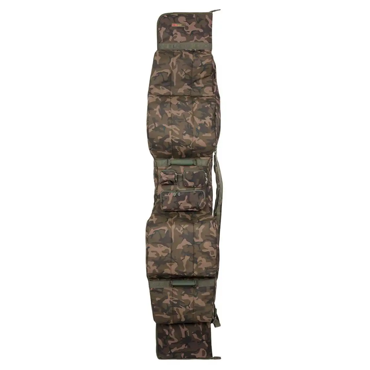 Das Camolite 12 ft 3+3 Rod Case kann bis zu 6 fertig montierte Ruten aufnehmen und enthält gepolsterte Trennelemente. Transportieren kannst du das Rod Case ganz nach Belieben entweder über die versteiften EVA-Tragehandgriffe oder über den abnehmbaren gepolsterten Schultergurt. Weiters bietet die dieser Rod Case eine große Außenaufsatztasche für deinen Kescher.