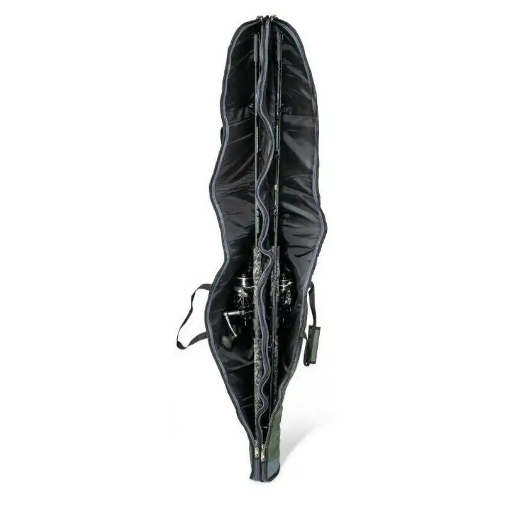 Sie wurden so dimensioniert, dass zwei 9 ft Ruten mit den größten Stationärrollenmodellen problemlos hinein passen. Eine weitere aufgesetzte Seitentasche, von bis zu 130 cm je nach Modell, ermöglicht Ihnen weitere Utensilien wie zum Beispiel Rutenauflagen etc. gut zu verstauen und sicher zu transportieren.